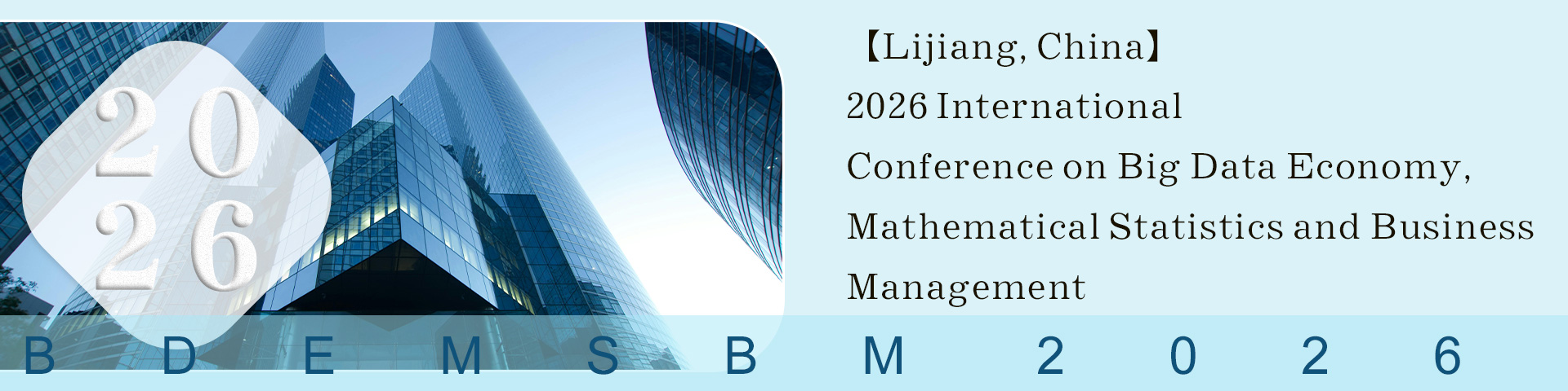The 2026 International Conference on Big Data Economics, Mathematical Statistics, and Business Management (BDEMSBM 2026) will be grandly held in Lijiang, China. This international conference aims to provide a high-level and open academic exchange platform for experts, scholars, researchers, engineering technicians, business managers, and policymakers from around the world who are engaged in the fields of big data economics, mathematical statistics, business management, and related interdisciplinary areas. The conference will delve into in-depth discussions on hot topics such as economic development driven by big data, statistical modeling and analysis, business intelligence, and decision optimization. It aims to promote the deep integration of big data technology, statistical methods, and business management practices, thereby facilitating enterprises' digital transformation and high-quality economic development. BDEMSBM 2026 will gather academic elites and industry experts from around the world to jointly explore cutting-edge trends and innovative achievements in the field of big data economy and business management, promoting international scientific research cooperation and collaborative industrial development. Conference Highlights Sharing of cutting-edge research The conference will focus on showcasing the latest research achievements in the fields of big data economy, mathematical statistics, and business management, covering hot topics such as big data analysis and modeling, data-driven macroeconomic forecasting, enterprise data governance, business intelligence systems, statistical learning methods, risk and decision analysis, etc. Combining theory with practice Through various forms such as keynote speeches, paper exchanges, case discussions, and technology demonstrations, we aim to promote the deep integration of academic research and practical application, and facilitate the implementation and promotion of big data and statistical methods in business management fields such as finance, marketing, supply chain management, human resources, and strategic decision-making. Interdisciplinary integration platform BDEMSBM 2026 is committed to building a multidisciplinary and integrated exchange platform, attracting experts and scholars from various fields such as economics, statistics, management, computer science, data science, and artificial intelligence, to jointly explore the path of business management innovation driven by data. Policy and Industry Trend Dialogue Representatives from universities, research institutions, large enterprises, and data analysis companies will be invited to participate in the conference. The conference will focus on in-depth exchanges and dialogues on hot topics such as the orientation of big data economic policies, the application of statistical methods in decision-making, and business data governance standards. BDEMSBM 2026 will be a high-level and high-impact international event in the field of the integration of big data economy, mathematical statistics, and business management, bringing together global wisdom to jointly explore the path of economic development and management innovation driven by data. We sincerely welcome experts, scholars, researchers, and industry professionals from all over the world to actively participate in this event, and together, let's celebrate this great occasion in beautiful Lijiang, China, and jointly push business management and economic research in the era of big data to new heights!